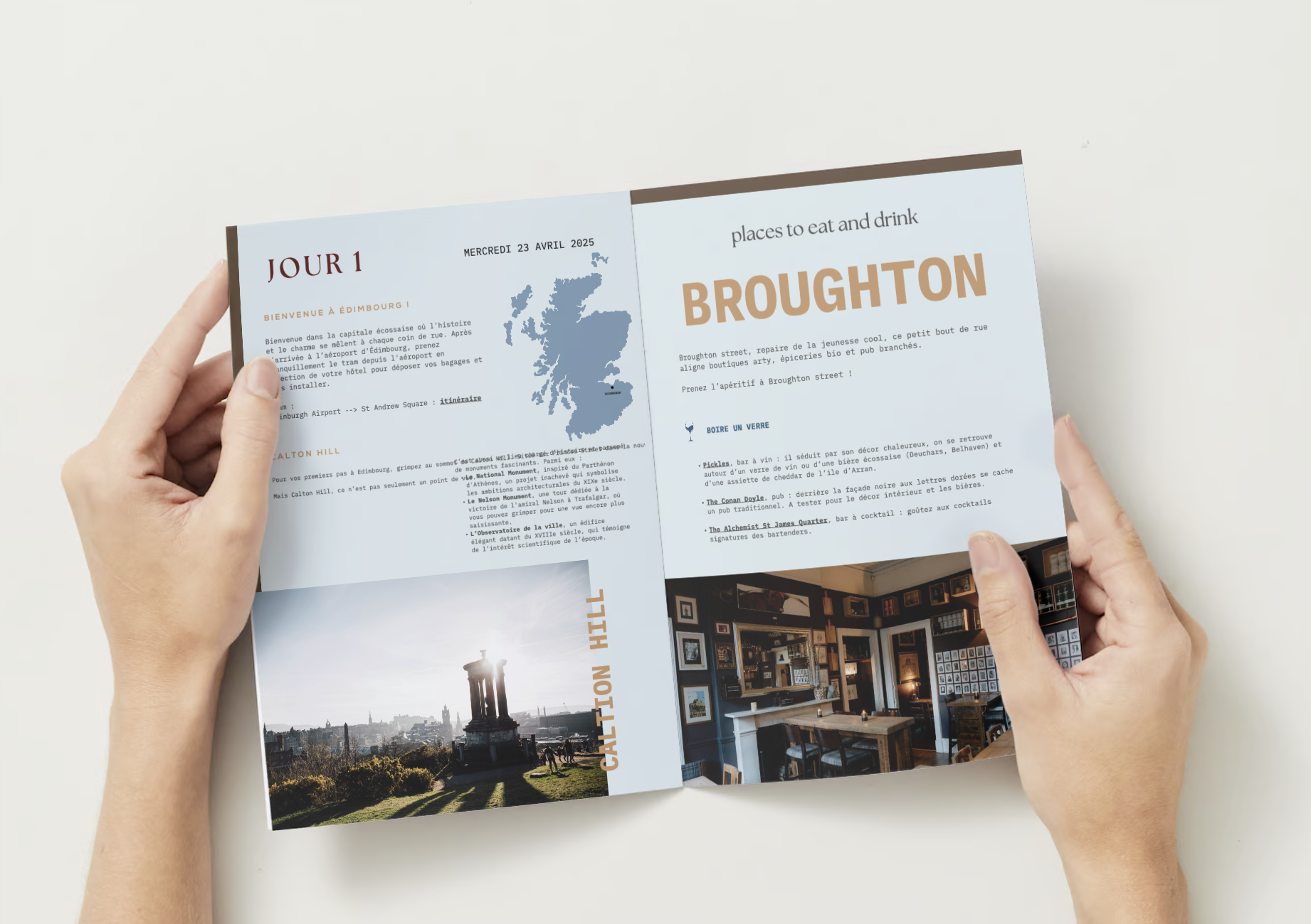 Je peaufine chaque détail et je conçois votre carnet de voyage personnalisé avec toutes les informations sur votre séjour (vols, itinéraire, hébergements, activités, visites, adresses…).